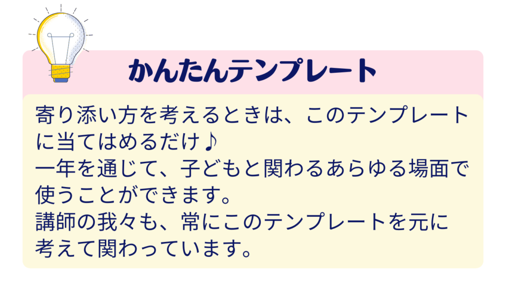 寄り添い、受け入れる対応が、お子さんの「自分は愛されている」「自分は大丈夫」という安心感を育て、子どもの持っている力がより発揮されやすくなります。
